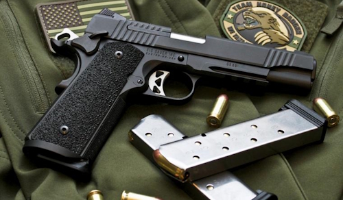 A modern version of the iconic 1911, a full sized, single action, semi-automatic handgun chambered in 45 ACP.