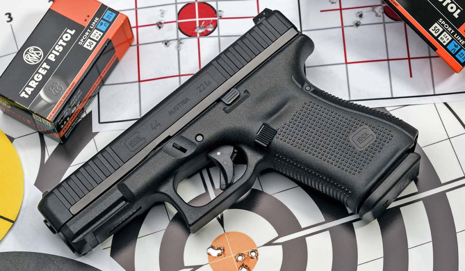 The Glock 44 offers the same compact, striker-fired, semi-automatic handgun currently in use by law enforcement agencies around the world, but chambered in the much smaller .22 long rifle round.